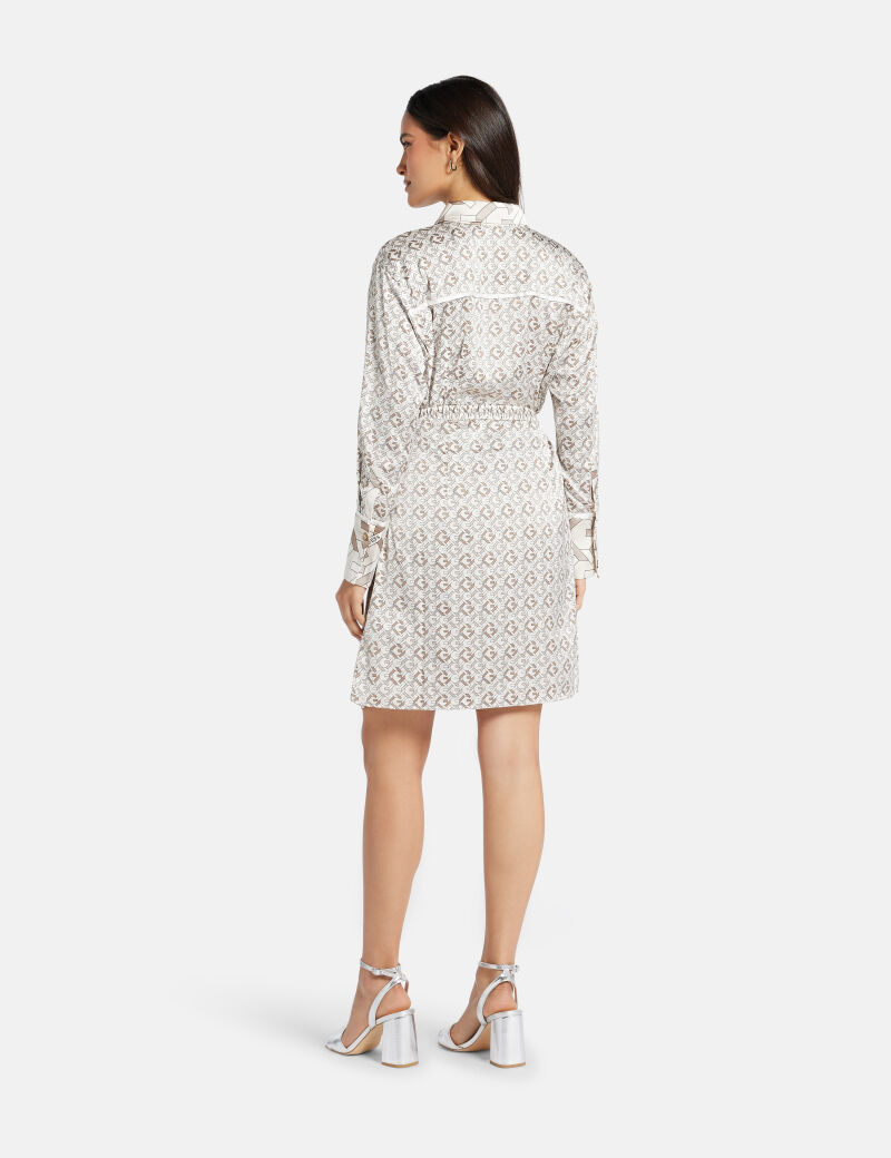- فستان قميص قصير من قماش الساتان المطاطي.