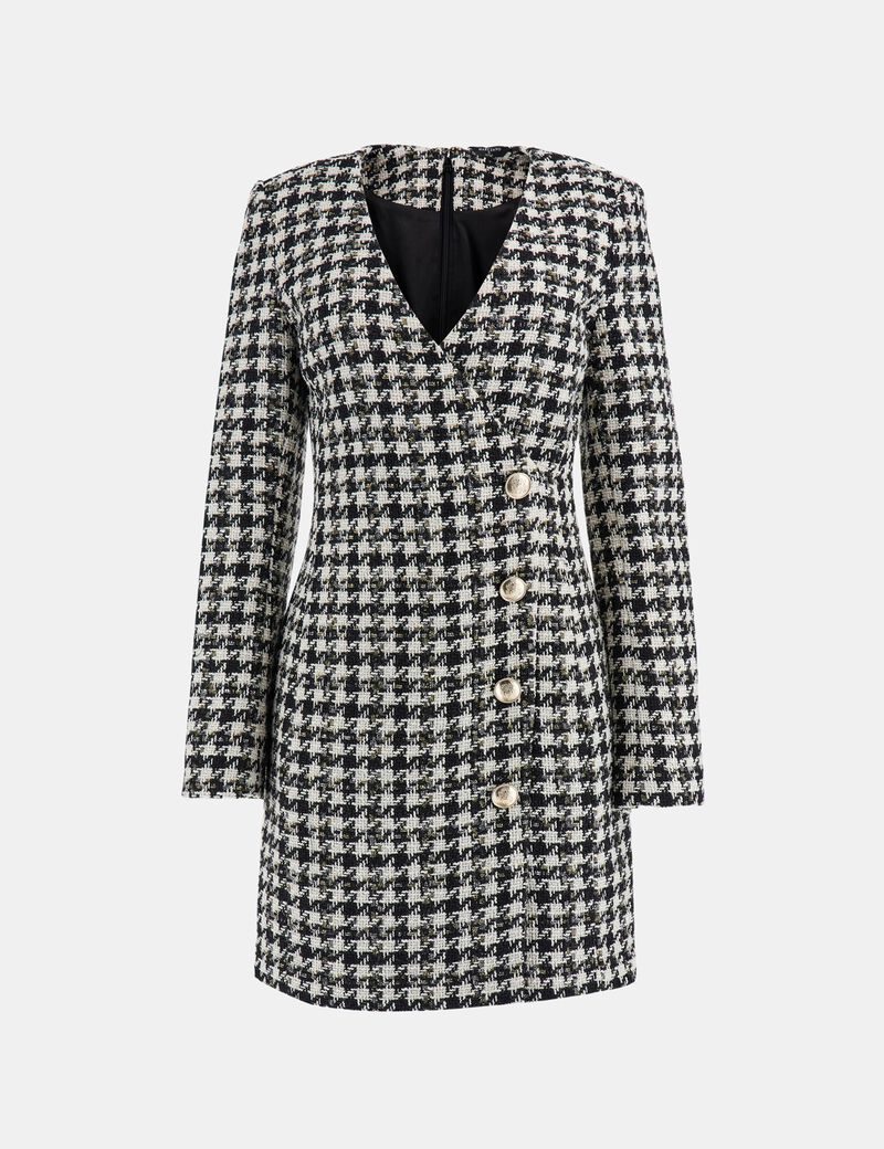 - أزرار ذهبية مربعة وسحاب للإغلاق.