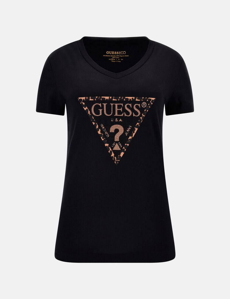 تي شيرت من مزيج القطن، رقبة على شكل حرف V، أكمام قصيرة، قصة ضيقة. نوع القماش: جيرسي مطاطي. الزينة: شعار مثلث. الصورة توضح المقاس S. الطول الإجمالي: 60 سم / 23.62 بوصة.حجم مناسب . الهيكل (القماش الرئيسي): 95% قطن، 5% إيلاستين. ملصق الغسيل: يُغسل بدرجة حرارة 30 درجة مئوية كحد أقصى. يحتوي هذا المنتج على ألياف القطن العضوي.