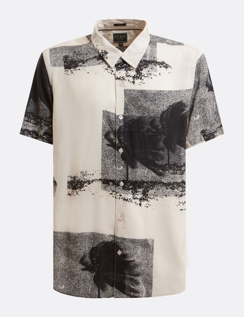 يحملك هذا القميص إلى أماكن رائعة، ويتميز بطبعة تجريدية لأشجار النخيل على كامل النسيج، مع ياقة وإغلاق بواسطة أزرار.